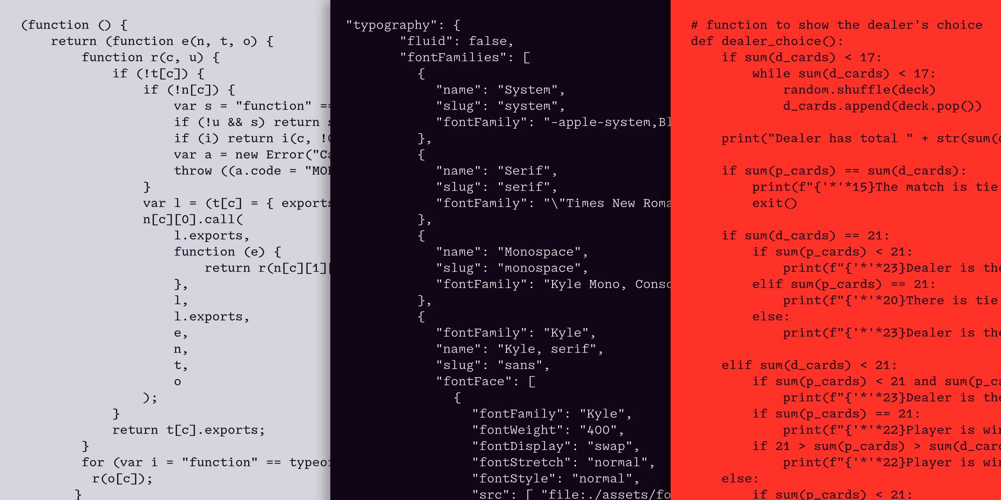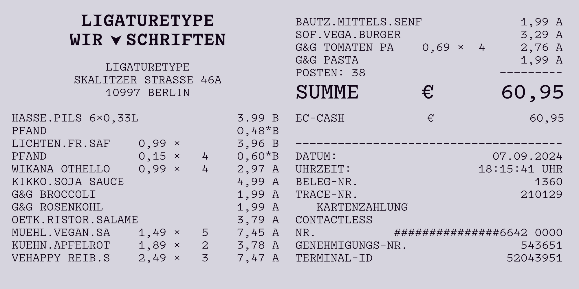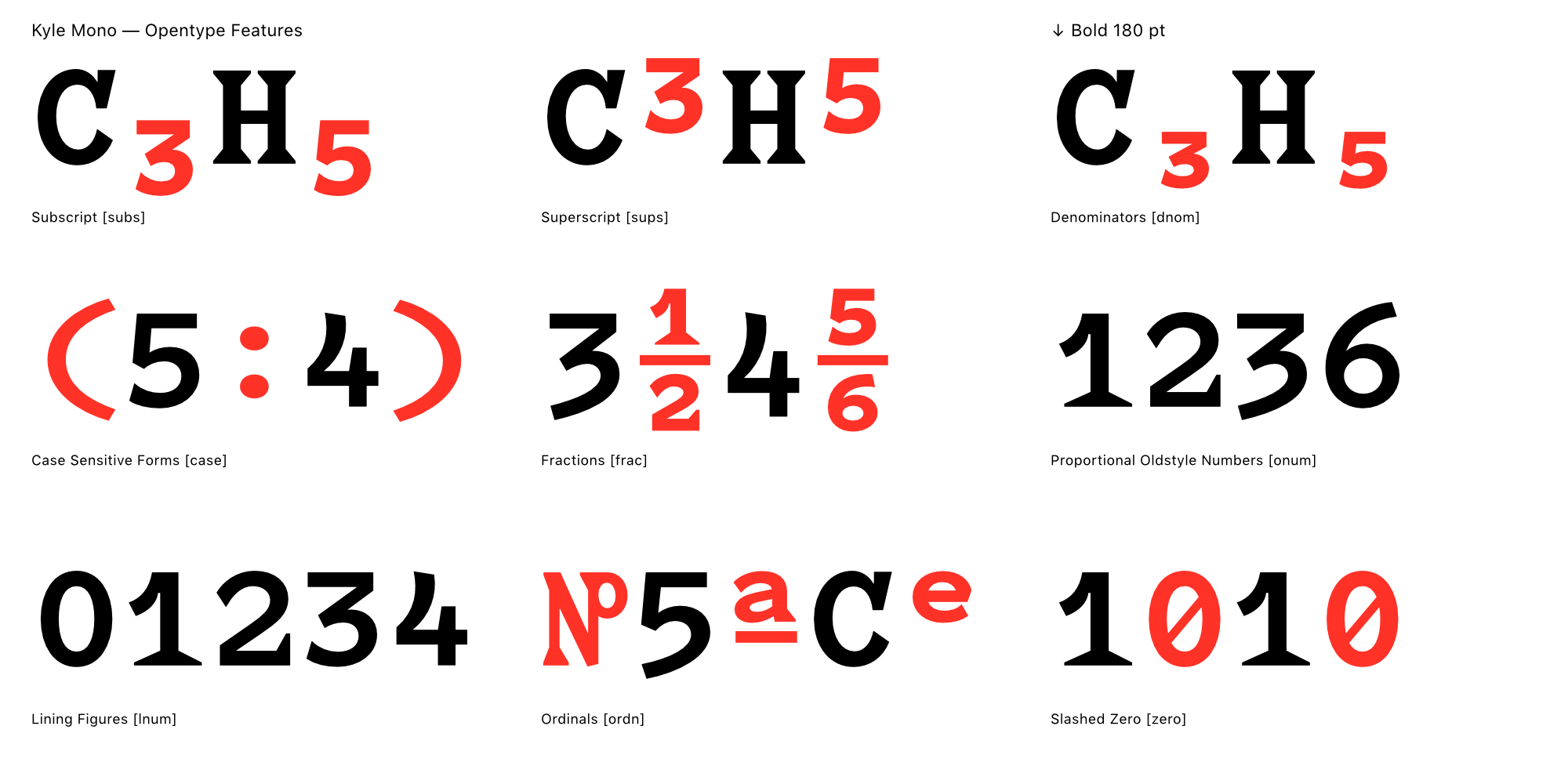 On the practical side, Kyle-Mono is great for use in coding, flight arrival displays, comparing amino acids or writing dadaist poetry. On a more expressive level, it offers us its own specific, edgy design-flavour.